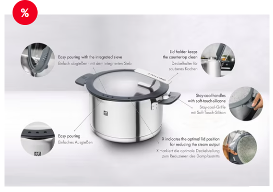 - Adequado para todos os tipos de fogões, incluindo indução, lavável na máquina de lavar louça