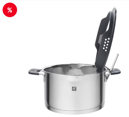 Cozinhar no próximo nível: A série Simplify da ZWILLING é sinônimo de design e função. O conjunto de panelas de 5 peças é ideal para os amantes da gastronomia entusiastas. Três caçarolas nos tamanhos 16, 20, 24 cm, uma caçarola com 20 cm e uma panela pequena com um diâmetro de 16 cm fazem parte do conjunto completo. O suporte da tampa para colocar a tampa durante a cozedura, o coador integrado e as pegas Stay-Cool com revestimento de silicone tornam a cozedura muito mais fácil. Essas funções são complementadas pelo acabamento de alta qualidade feito de aço inoxidável 18/10 e uma base SIGMA Classic + sanduíche.